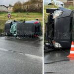 Rende, brutto incidente a Sant’Agostino. Un ferito, auto ribaltata