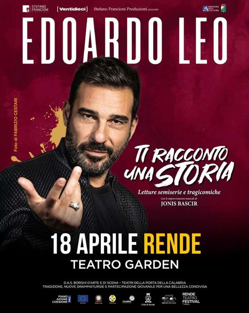 L’appuntamento è fissato per sabato 18 aprile 2026, quando Edoardo Leo salirà sul palco del Teatro Garden di Rende (CS) con lo spettacolo “Ti racconto una storia”, produzione che sta riscuotendo grande successo in tutta Italia. L’attore romano sarà accompagnato musicalmente da Jonis Bascir, in un intreccio di parole, musica ed emozioni che restituisce al pubblico il piacere del racconto dal vivo.