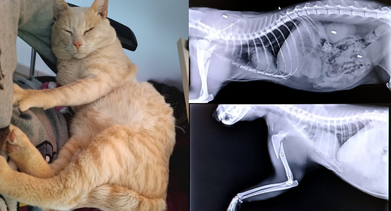 Un ragazzo di 25 anni, senza grandi mezzi ma con un cuore enorme, ha ascoltato i miei miagolii e non ha voltato lo sguardo. Nonostante la paura e la mia sofferenza, รจ riuscito a prendermi tra le sue braccia e portarmi dal veterinario. Le radiografie hanno mostrato la veritร : una grave frattura alla zampa anteriore, tre proiettili ancora nel corpo e una vita segnata da violenze subite.