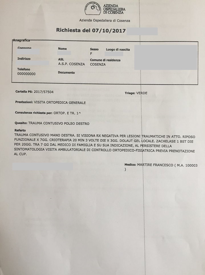 Nessuno di noi ha fatto in tempo a prendere il numero di targa e pur avendo fatto denuncia, ora in nessun modo si riesce a trovare quest’uomo. Abbiamo visionato insieme ai vigili le telecamere del pronto soccorso… e di certo questa macchina, lì, quel giorno, non è mai arrivata.