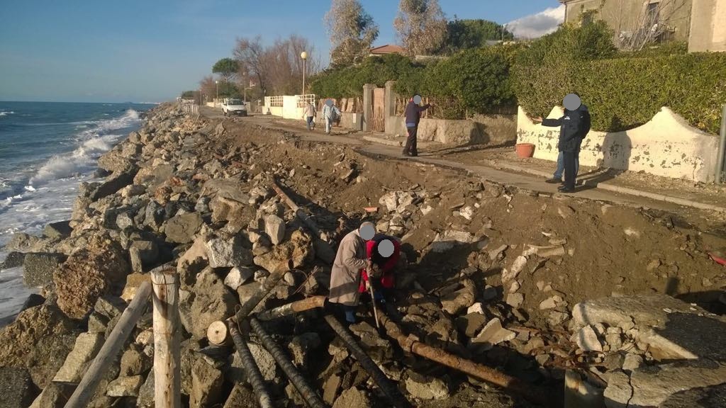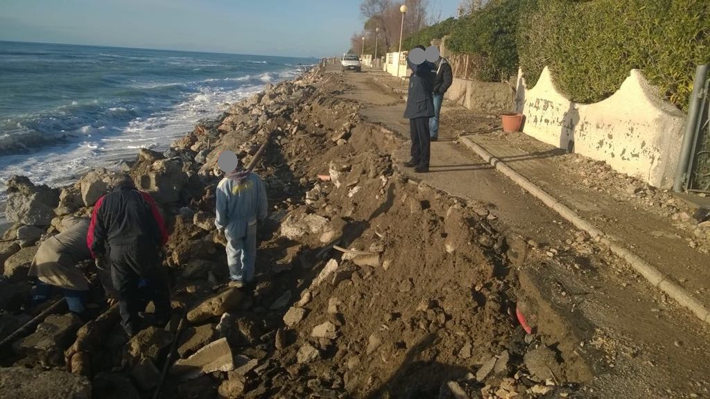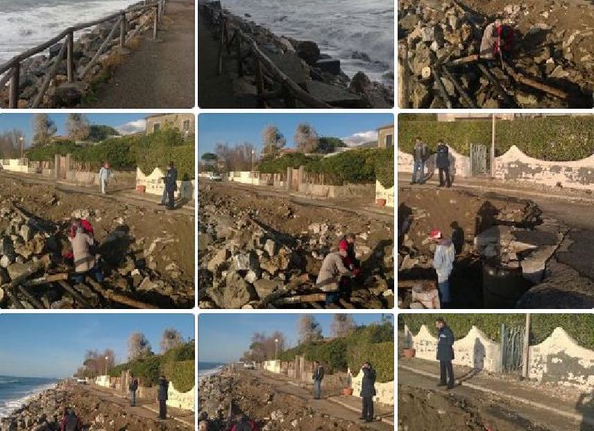 Queste foto sono state scattate ieri mattina, lo stato dei luoghi è quello che si vede. Il mare ha distrutto la strada e anche i recinti e muri di alcune case. E’ tutto un degrado. Le case così rischiano di essere inghiottite dal mare…