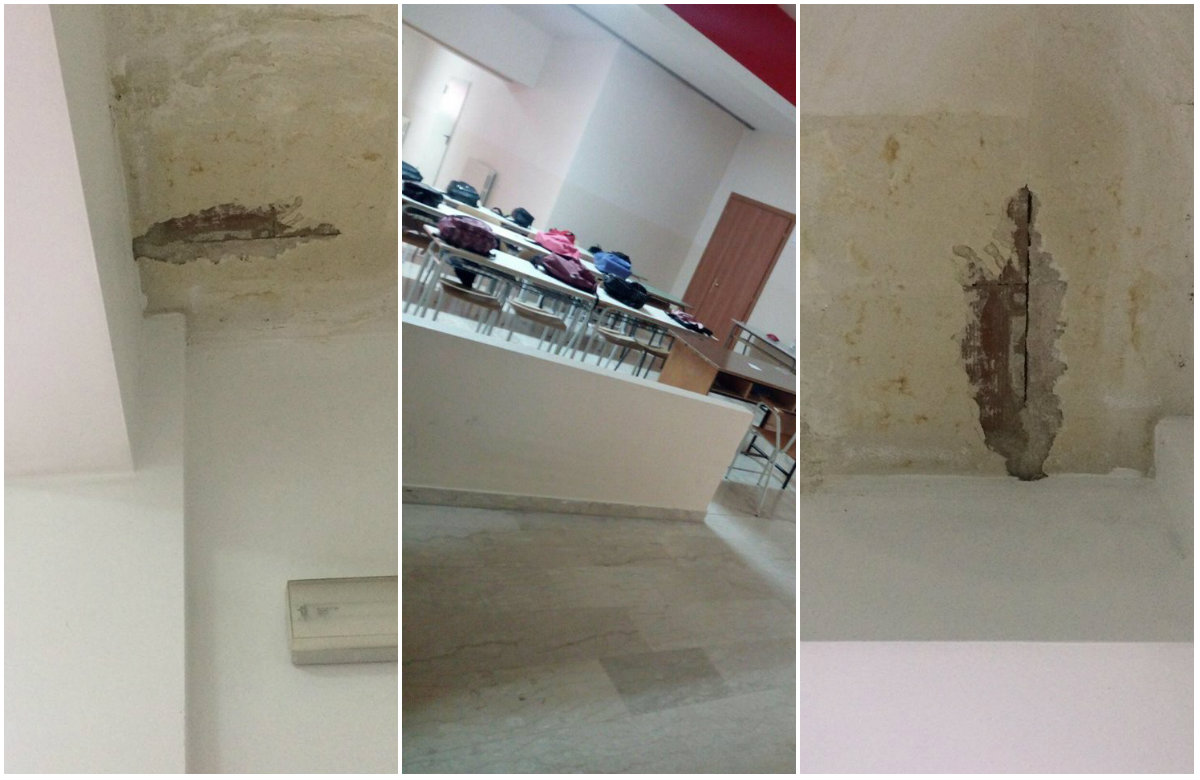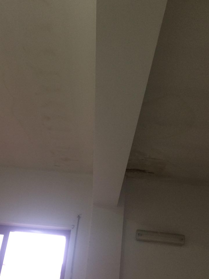 Dall’inizio di questo anno scolastico dato il numeroso numero di classi, noi ragazzi del 2° E siamo stati collocati in una classe inagibile fatta da muri di cartongesso e con una grossa lesione nel soffitto data dalle infiltrazioni d’acqua con conseguente caduta dall’intonaco.
