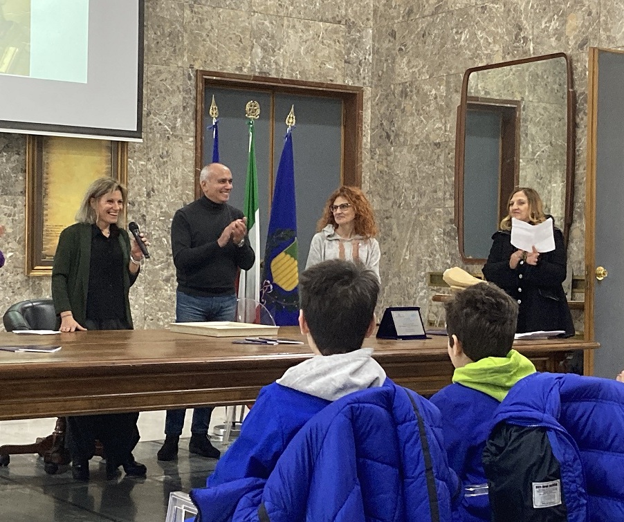 Il prestigioso riconoscimento è stato attribuito ai giovanissimi studenti del “Don Milani-De Matera”, diretto dalla dott.ssa Immacolata Cairo, per il videoracconto “Il Filo della Storia”, proiettato nel salone di rappresentanza di Palazzo dei Bruzi, alla presenza del Sindaco Franz Caruso e della consigliera delegata alla Cultura Antonietta Cozza che ha invitato i ragazzi, accompagnati da docenti e genitori, nella sede municipale.