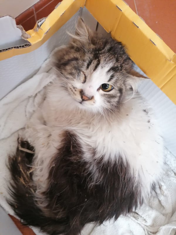 Paolo è un gatto di neanche un anno che è stato ritrovato investito a Bisignano (Cs), ha riportato la frattura del bacino, è anemico, al momento ha un insufficienza renale, è senza un occhietto