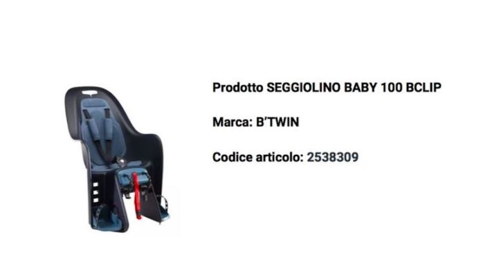 Decathlon sta richiamando il seggiolino 100 B’CLIP per biciclette della marca B’TWIN.