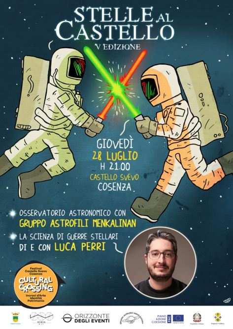 Le tematiche del suo intervento verteranno sulle scoperte scientifiche correlate al mondo della fantascienza: “Iperspazio, pistole laser, droidi, porti spaziali e una misteriosa Forza capace di connettere tutti gli esseri viventi.