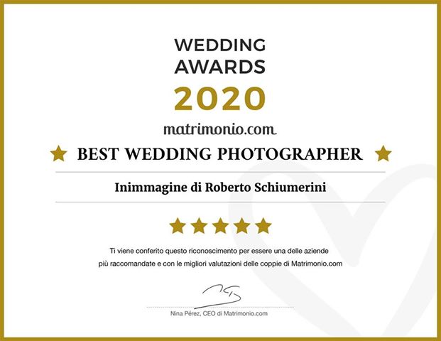 In un anno difficile per i matrimoni, Inimmagine di Roberto Schiumerini ottiene un Wedding Award di Matrimonio.com, il premio più prestigioso del settore.