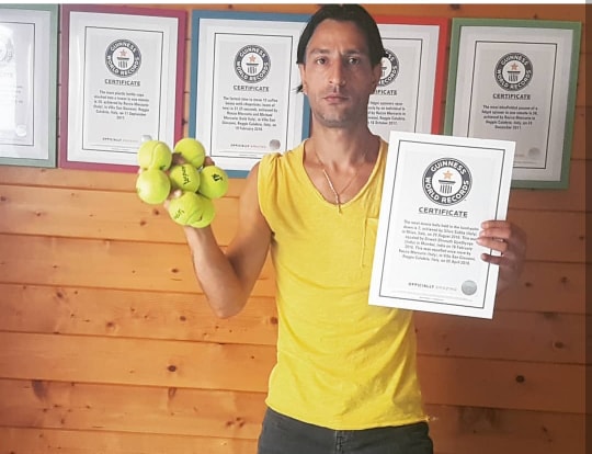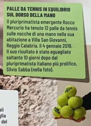 – Il maggior numero di palle da tennis tenute in equilibrio sul dorso della mano (12)