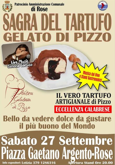 L’Amministrazione comunale di Rose, in collaborazione con L’Antica Gelateria di Pizzo, organizza per sabato 27 settembre, a partire dalle ore 20:00, la Sagra del Tartufo di Pizzo