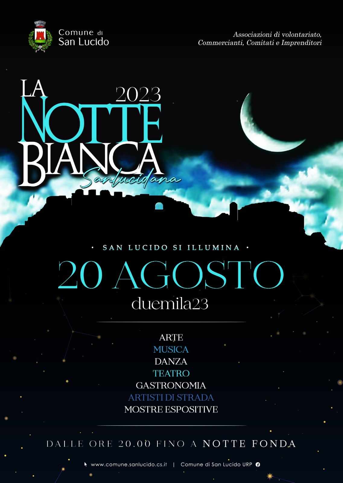 La notte bianca è il clou della programmazione estiva del mese di Agosto alla pari del carnevale estivo per il mese di luglio. Uno degli eventi di spicco di una programmazione estiva di assoluto spessore fortemente voluta dall’amministrazione comunale di San Lucido guidata dal sindaco, dott. Cosimo De Tommaso e dal giovane assessore al turismo, Cristian Marchese.