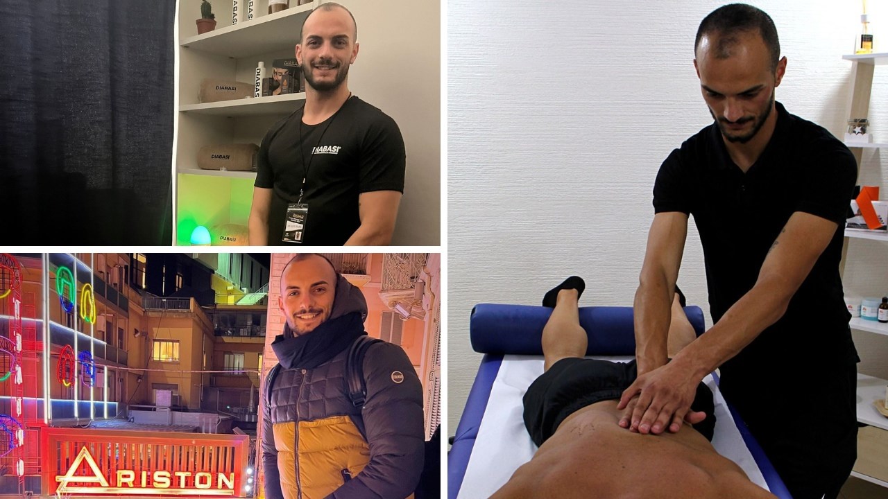 A curare il benessere degli artisti in gara e degli altri ospiti, c’era anche il massaggiatore cosentino Manuel Puterio