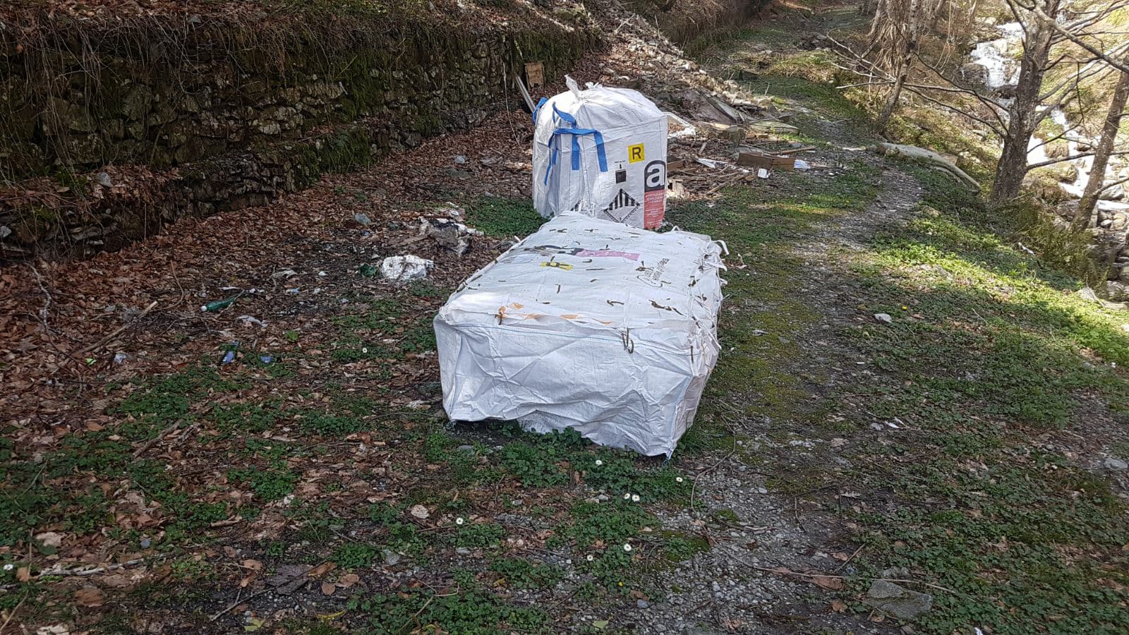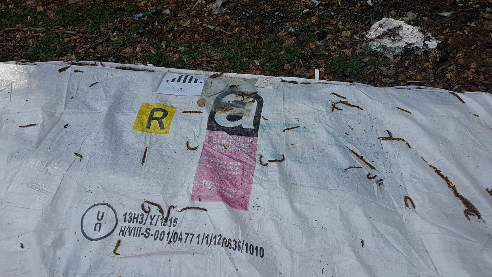 Poco più avanti, lo stesso materiale, era riverso a terra negli alberi.