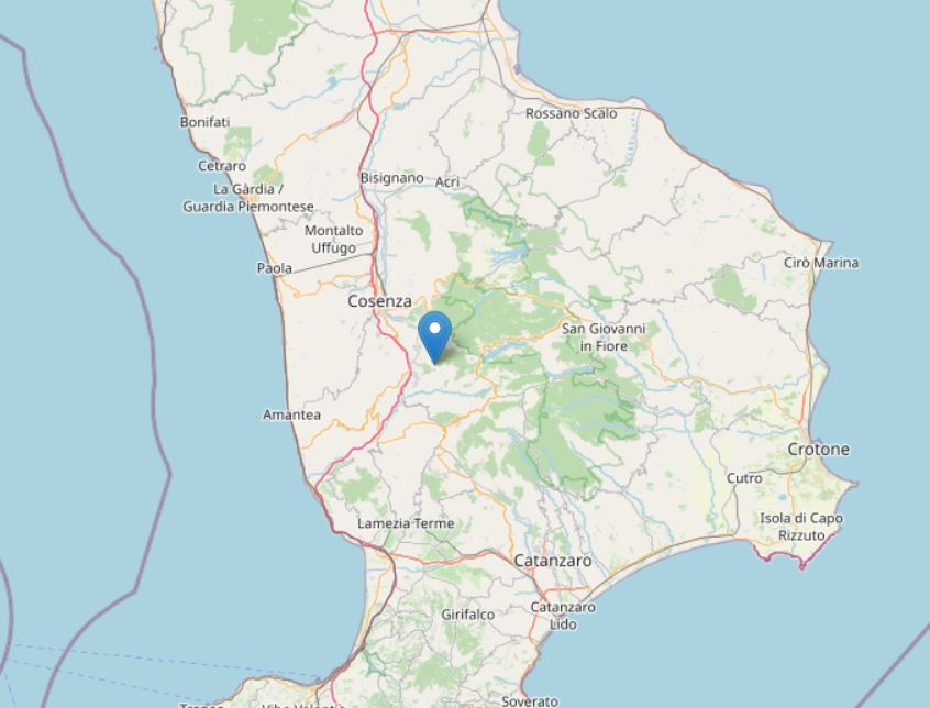 con coordinate geografiche (lat, lon) 39.2080, 16.3580 ad una profondità di 20 km.