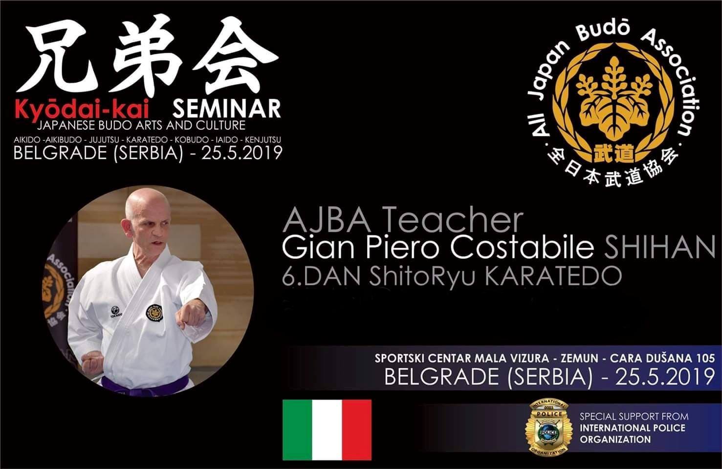 Il 25 Maggio prossimo il Maestro Costabile rappresenterà l’Italia durante un seminario di Arti Marziali a livello Mondiale che si terrà in Serbia, a Belgrado, dove trasmetterà ancora una volta la sua esperienza a tutti i partecipanti.