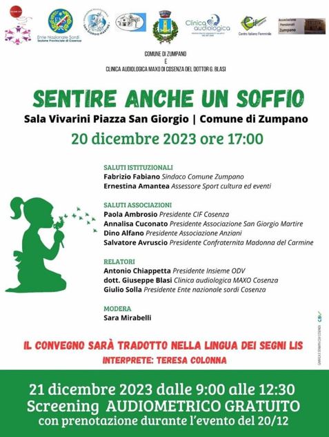 Oggi, presso la sala Vivarini in piazza San Giorgio a Zumpano la Clinica Audiologica del Dott. Giuseppe Blasi, ed i rappresentanti del Comune di Zumpano hanno annunciato un impegno congiunto per sensibilizzare la comunità sulla sordità