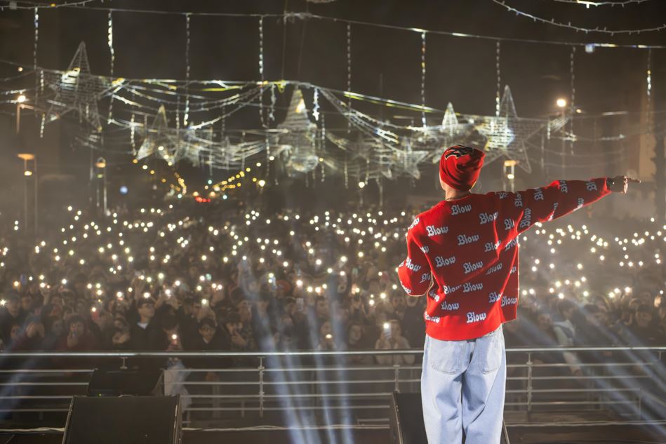 “In migliaia, il 25 dicembre, da tutto il circondario hanno invaso gioiosamente piazza Bernardino Le Fosse, per cantare e ballare sui ritmi freestyle di Shade. In due ore e passa di concerto, Vito Ventura in arte Shade, non si รจ risparmiato e con la sua crew dal palco ha conquistato, in un’onda festosa e intergenerazionale, intere famiglie.