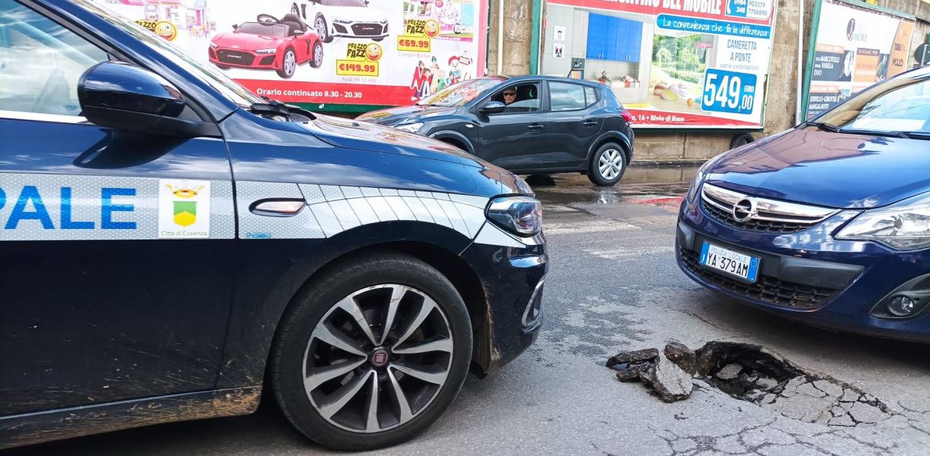 L’asfalto cede in una delle arterie principali della città di Cosenza