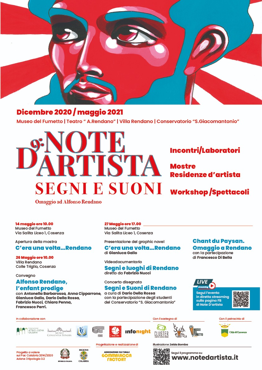 Note D’Artista. Segni e Suoni è un progetto di Associazione Gommalacca Factory con il contributo della Regione Calabria, a valere sull’Azione 3 Tipologia 3.2, il patrocinio del Comune Di Cosenza e il sostegno della Scuola e del Museo del Fumetto di Cosenza.”