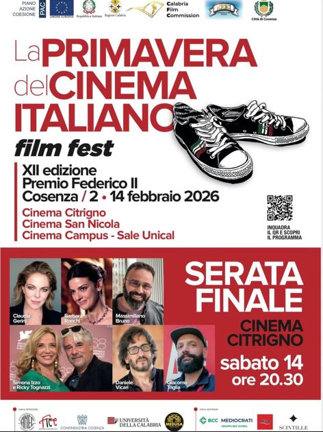 Gran finale questa sera, sabato 14 febbraio, alle ore 20.30, al Cinema Citrigno di Cosenza, per la dodicesima edizione del festival “La Primavera del Cinema Italiano – Premio Federico II”, che si concluderà con il tradizionale red carpet e la cerimonia di consegna del Premio Federico II