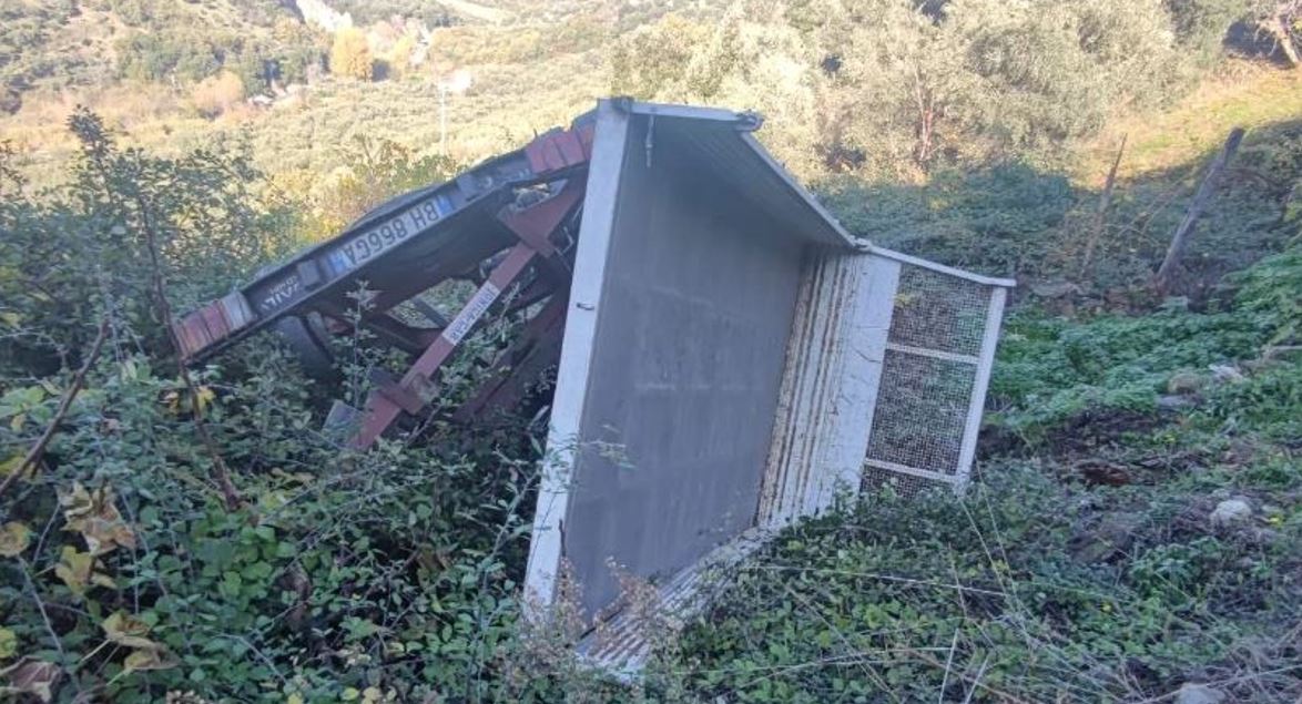 Incidente questa mattina a Cropalati, nella Valle del Trionto, dove un camion si è ribaltato lungo la stradina di campagna che attraversa il territorio