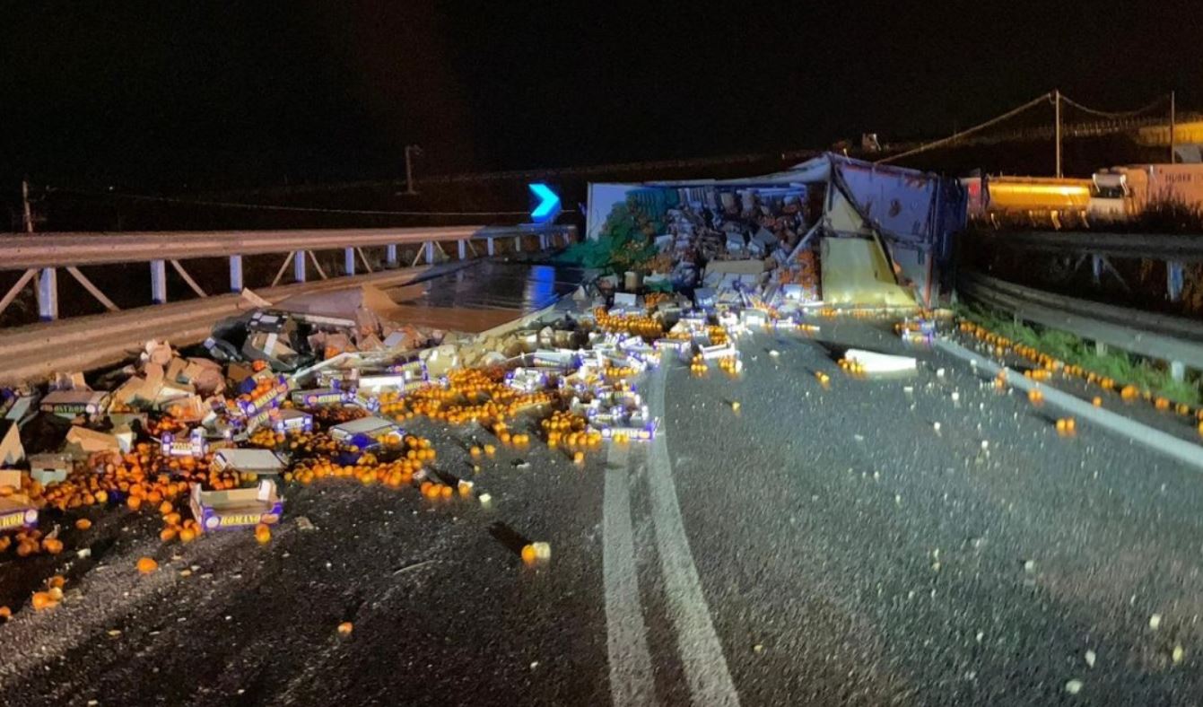 Si ribalta un camion carico di agrumi sull’autostrada nel cosentino all’altezza di Sibari