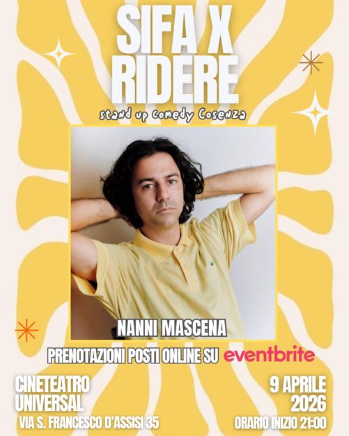 Dall’idea e dall’entusiasmo di due giovani residenti del centro storico, Elisa Pizzini e Paolo Pasqua, nasce “SIFA X RIDERE“, la prima rassegna di stand-up comedy a Cosenza, realizzata grazie alla collaborazione con associazioni del territorio cosentino, Marley Session, Gynestra e Cineteatro Universal.