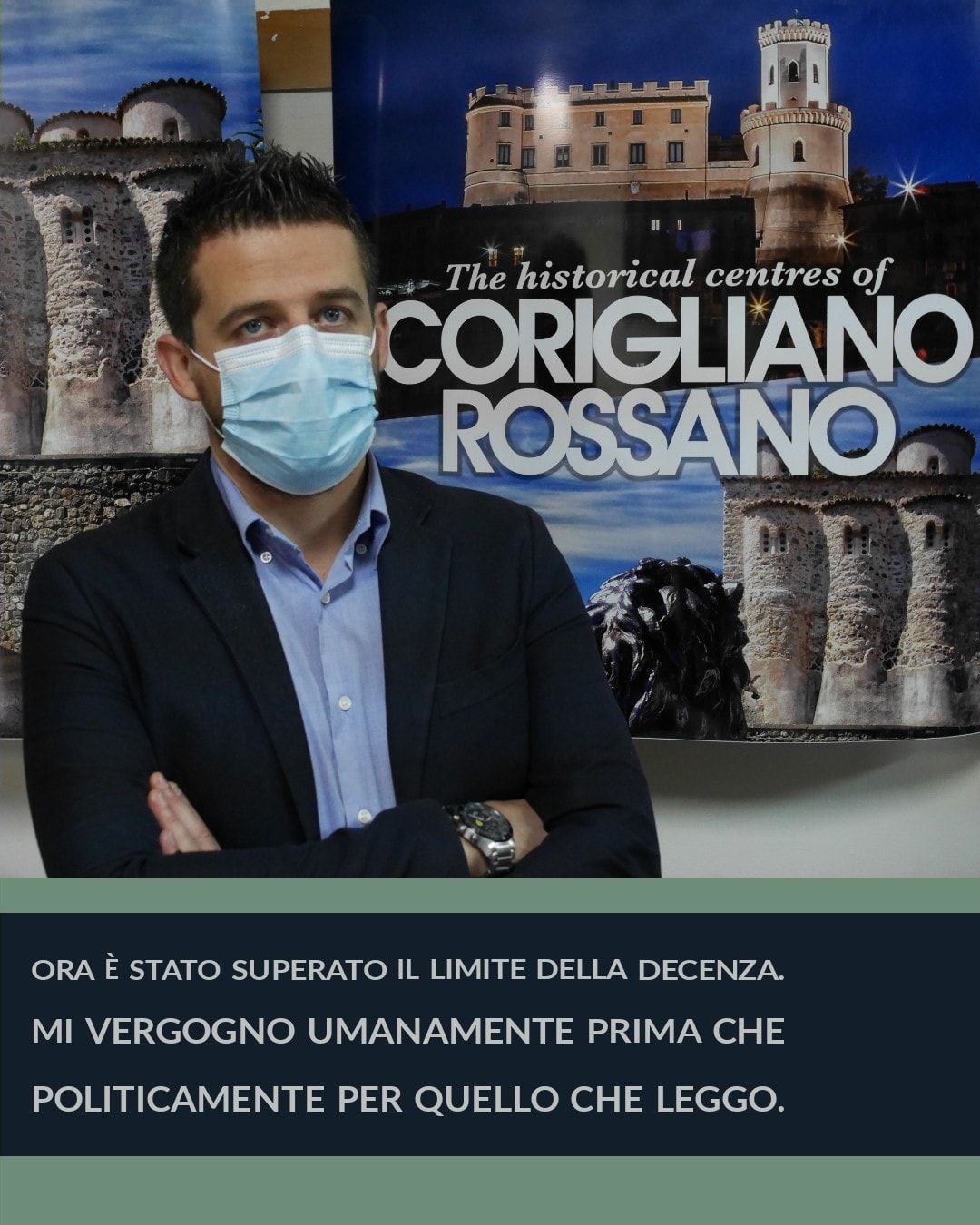 Allora se questo è il livello, se la specie di classe politica che ci ritroviamo – certamente la peggiore d’Italia – arriva a speculare sulla vita delle persone, se si intende trovare nell’avversario politico locale il responsabile della pandemia mondiale, allora preferisco auto-accusarmi: il responsabile della pandemia mondiale e di tutto ciò che ne consegue, sono io, il sindaco di Corigliano-Rossano. Meglio avere la colpa di tutto che somigliare a questa gente.“