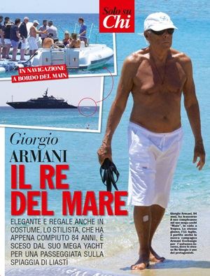A confermarlo è il settimanale “Chi” nell’ultimo numero. «Giorgio Armani, 84 anni, – si legge nella didascalia di una foto che ritrae lo stilista e la sua imbarcazione – ha trascorso il suo compleanno sul suo mega yacht “Main”, in rada a Tropea.”