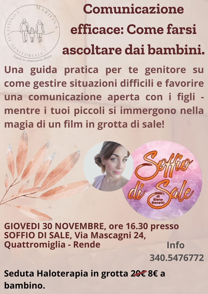 “Soffio di Sale”: consulente genitoriale offre workshop gratuito su strategie educative per genitori