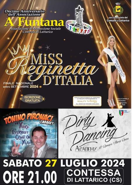 Il concorso di bellezza “Reginetta d’Italia” approda con una delle sue tappe a Contessa di Lattarico sabato 27 luglio