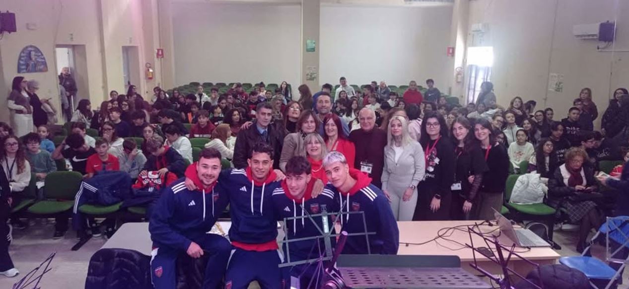L’iniziativa ha registrato un successo eccezionale. Fin dal loro ingresso nell’auditorium, i calciatori e i membri dello staff sono stati accolti da cori, applausi e striscioni preparati dai ragazzi. L’entusiasmo travolgente degli studenti ha creato un’atmosfera calorosa e festosa: i giocatori sono stati letteralmente osannati, segno dell’affetto autentico che li lega ai più giovani e al territorio.