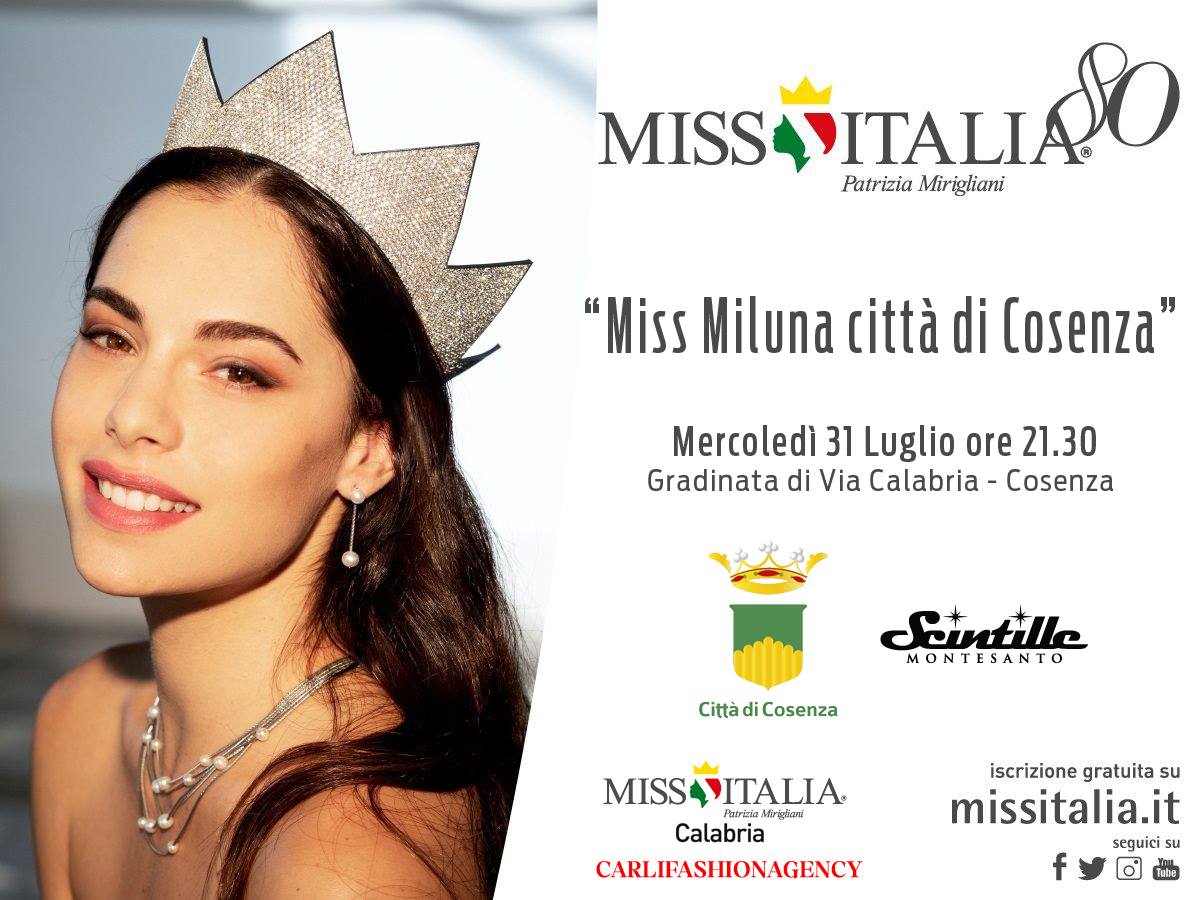 “Miss Italia Calabria torna a Cosenza per la sua sesta selezione provinciale. La manifestazione, organizzata dalla CarliFashionAgency di Linda Suriano e Carmelo Ambrogio, è in calendario per domani, mercoledì 31 luglio, alle 21.30 sulle scalinate di via Calabria.