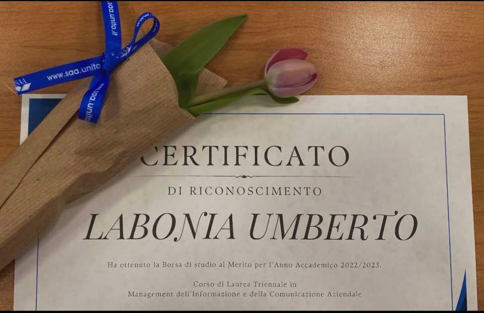 Il giovane studente Umberto Labonia, originario di Mirto Crosia, ha avuto l’onore di ricevere una borsa di studio al merito dal Dipartimento di Management, in collaborazione e cofinanziamento con la Fondazione S.I.A. – Fondazione per gli Studi di Interesse Aziendale.