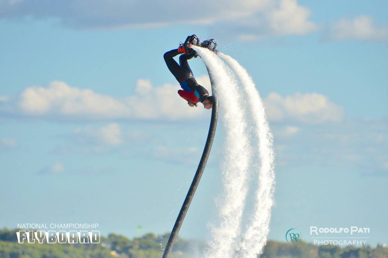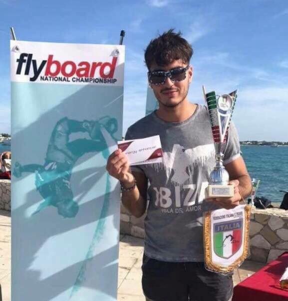 Il Flyboard è una macchina che consente, attraverso il motore di una moto d’acqua, di essere letteralmente sparati in aria. La mia passione per questo sport è nata tre anni fa, quando con mio cugino Aldo, ho deciso di intraprendere questa strada.