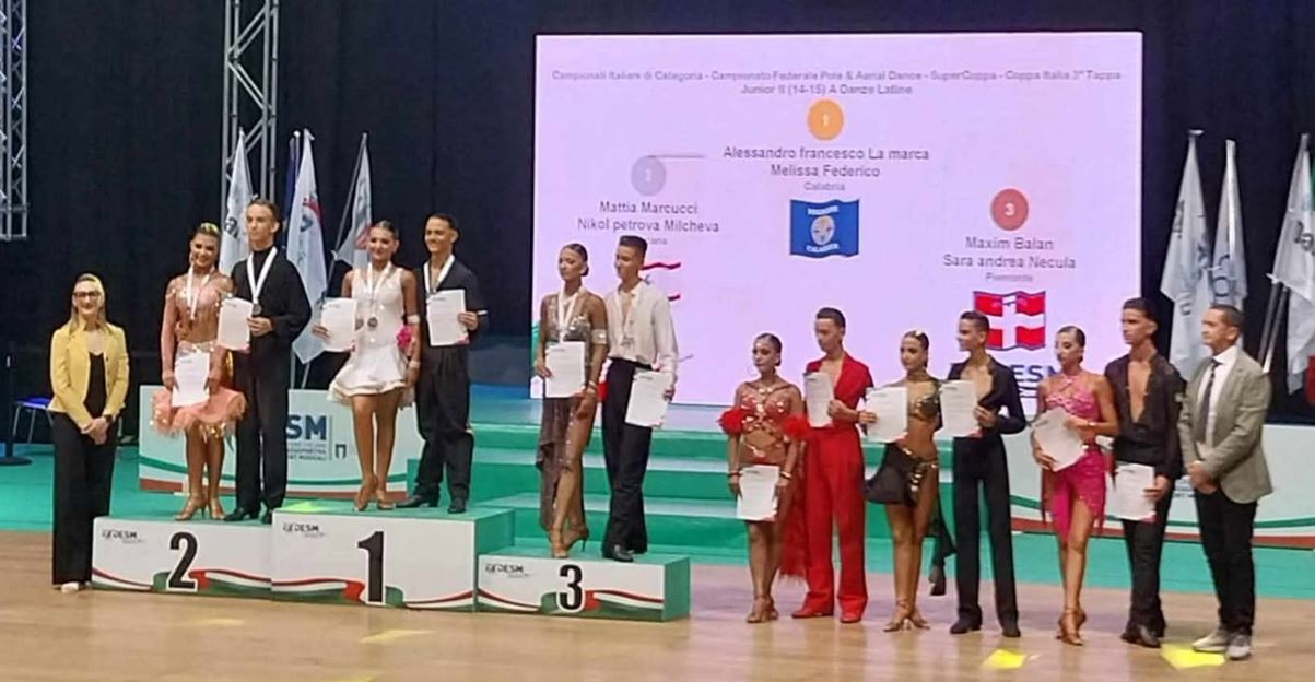 Melissa Federico e Alessandro La Marca, entrambi di Luzzi, sono due giovani atleti che nonostante ballino insieme da pochissimi anni, alla scuola di danza Emmea Show Academy di Rende diretta dal maestro Mario Palermo, hanno conquistato il primo posto nelle danze latine americane, portandosi a casa il titolo di Campioni Italiani in Classe A categoria 14/15.