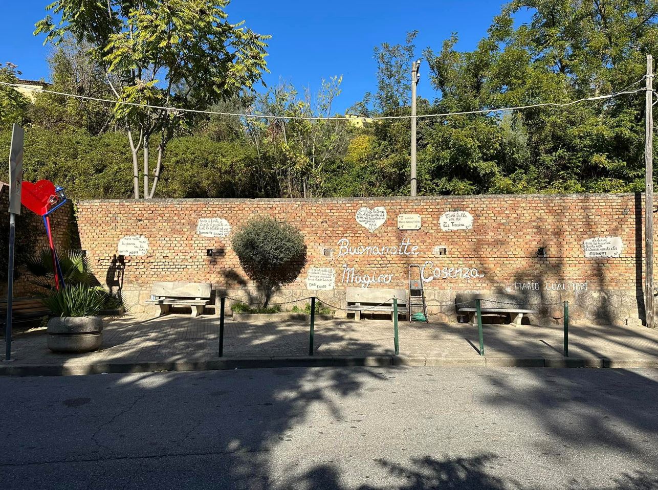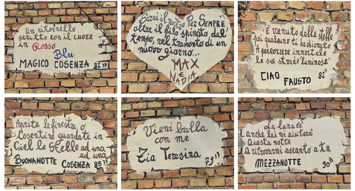 Su idea ed iniziativa del figlio Massimiliano, con la collaborazione di amici e parenti, sono stati dipinti sul muro della piazzetta che porta il nome del grande cantautore cosentino, alcune perle delle canzoni scritte da Mario in tanti anni di carriera.