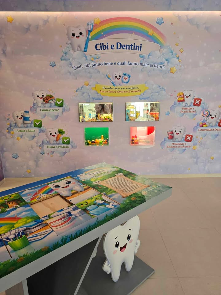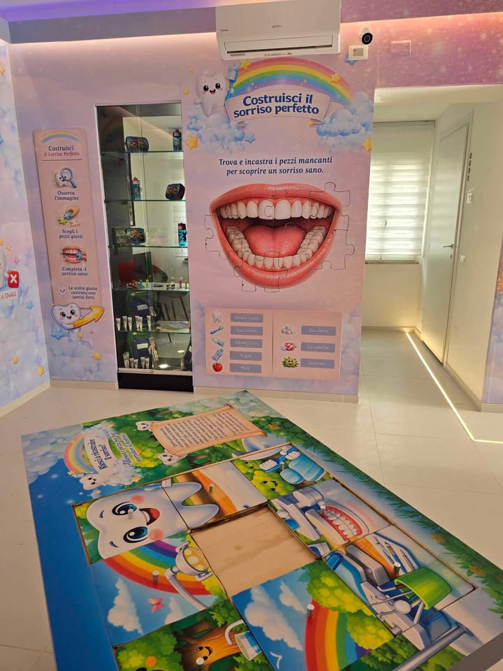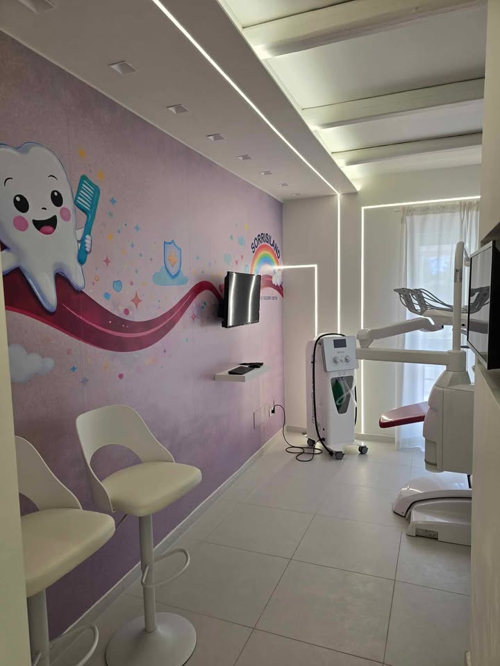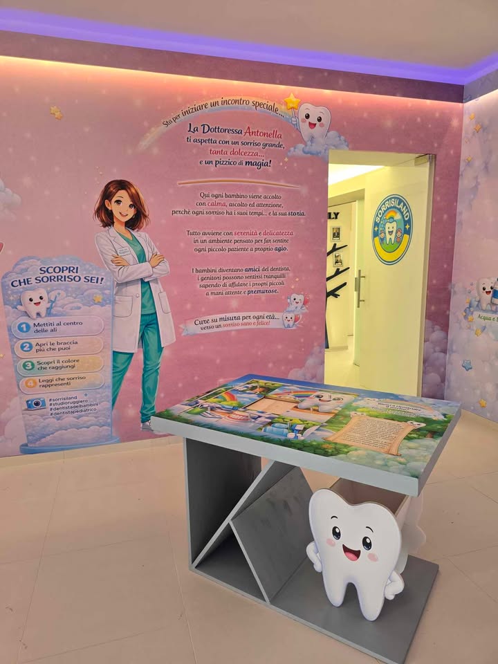 SorrisiLand è l’ala pediatrica integrata all’interno dello studio. Non un semplice reparto, ma un ambiente esperienziale dove cura, educazione e accoglienza si fondono in un unico percorso. Qui il bambino non è solo paziente… ma protagonista del suo sorriso.