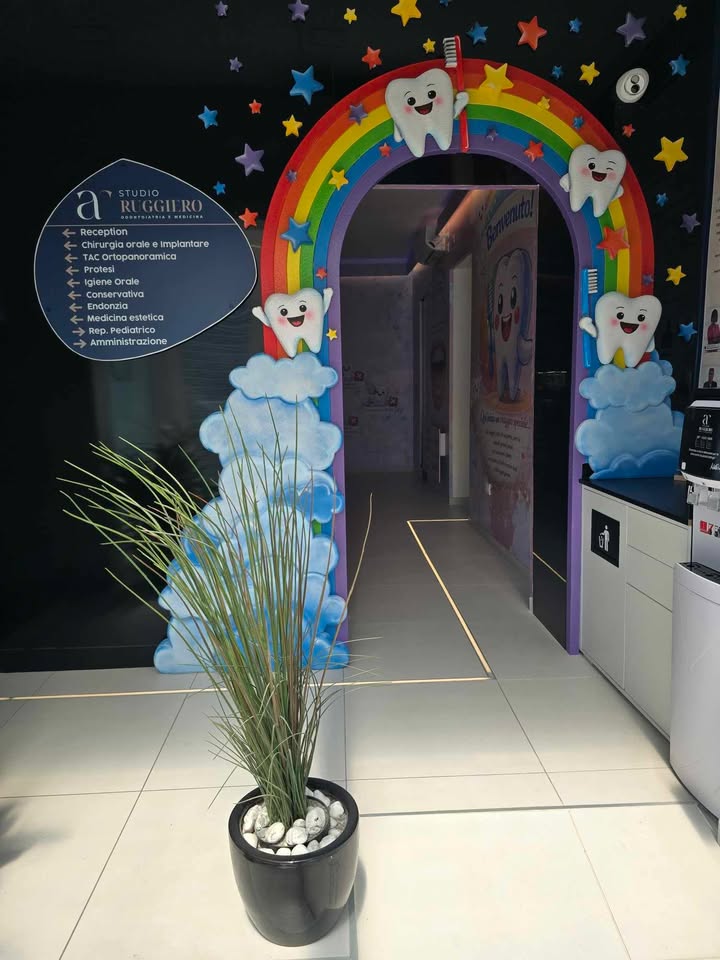 SorrisiLand nasce all’interno dello Studio Odontoiatrico Ruggiero, una struttura di oltre 500 mq distribuita su due livelli, con più riuniti operativi e un’organizzazione pensata per garantire qualità ed efficienza. All’interno dello studio vengono trattate tutte le branche dell’odontoiatria: implantologia, protesi, ortodonzia con allineatori trasparenti e percorsi personalizzati.