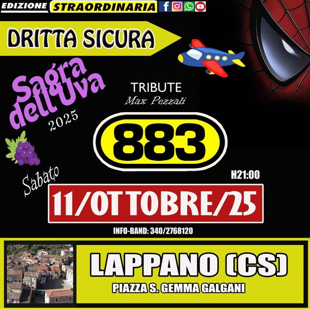 E poi, la sera, un altro grande momento musicale: salirà sul palco la cover band degli 883 “Dritta Sicura”, per farci cantare a squarciagola quelle canzoni che hanno segnato un’epoca.