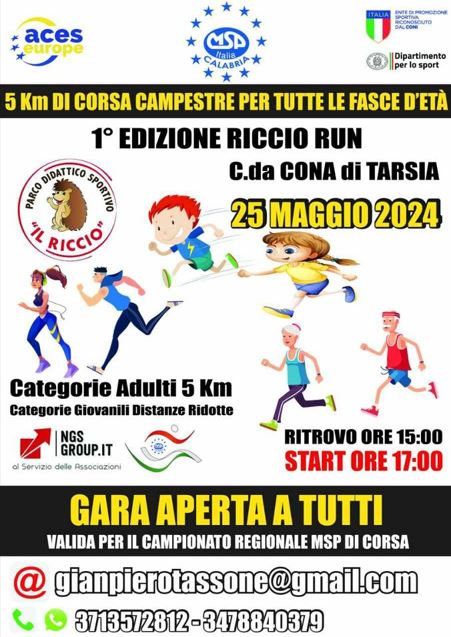 Riccio Run” è una gara di Corsa Campestre amatoriale inclusa nel Circuito Corse Calabria indetto da MSP Italia – Comitato Regionale Calabria
