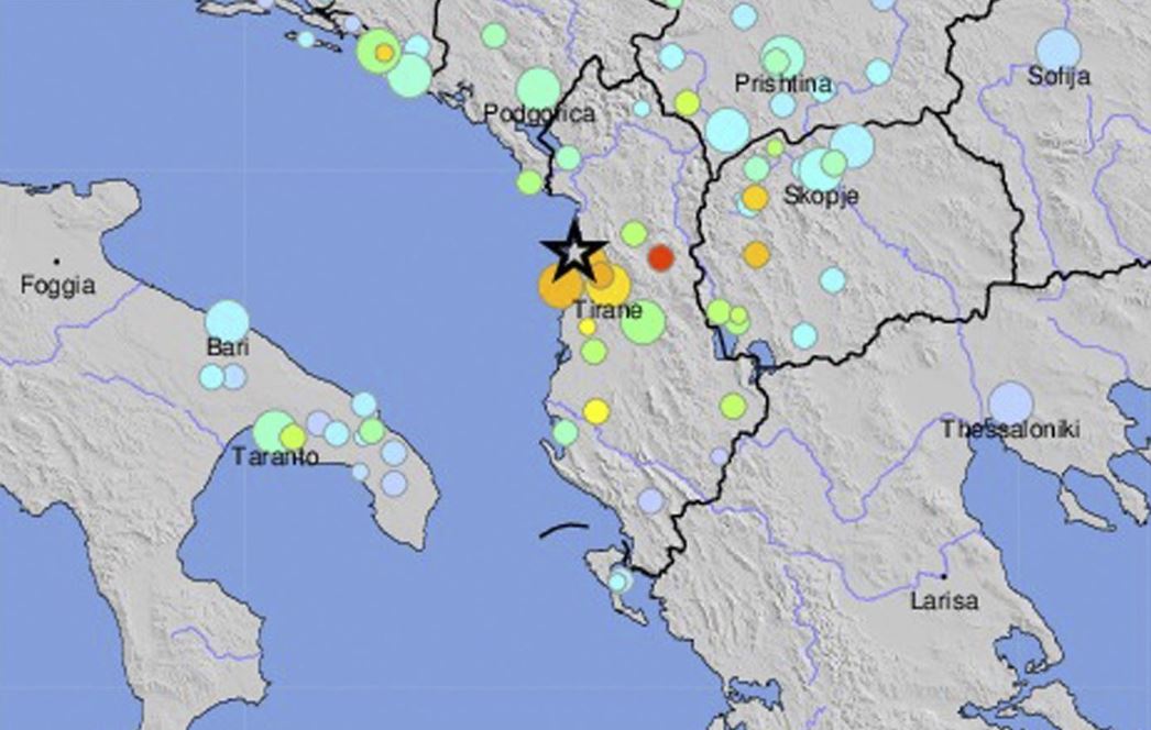 “Una forte scossa di terremoto di magnitudo 6.5 ha colpito alle 2:54 ora locale (le 3:54 in Italia) la costa settentrionale dell’Albania, vicino Durazzo.