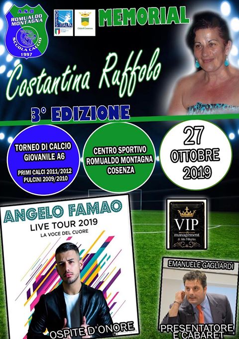 L’iniziativa, promulgata e mantenuta dai componenti della famiglia Gagliardi quali stretti familiari di Costantina Ruffolo e nonché massimi esponenti della medesima società, quest’anno punta in grande rispetto alle precedenti edizioni: la presente manifestazione avrà l’onore di ospitare 16 Scuole Calcio di tutto l’Hinterland Calabrese per le Categorie “Primi Calci e Pulcini”, con Partite che si articoleranno nel Settore Sportivo sito in via Romualdo Montagna ed in altri Campi Sportivi prospicienti.