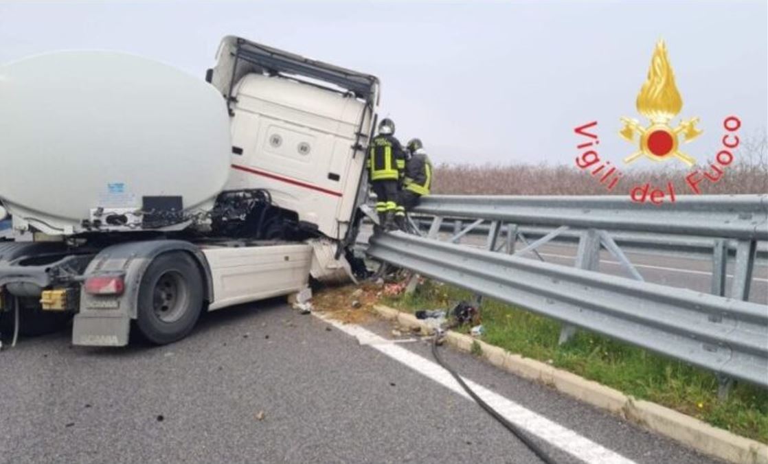 “La causa del traffico un incidente, a quanto pare autonomo, di un Tir finito fuori dalla carreggiata.”