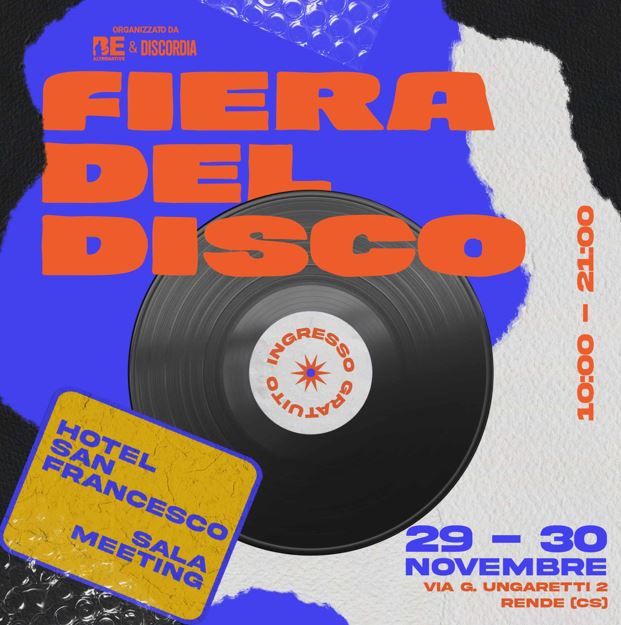Sabato 29 e domenica 30 novembre 2025, la Sala Meeting dell’Hotel San Francesco di Rende (CS) ospiterà la Fiera del Disco, appuntamento ormai consolidato per appassionati e collezionisti di vinili, CD, DVD e memorabilia musicali