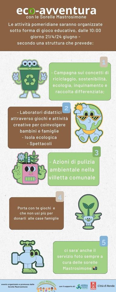L’Agenzia di Animazione “Le Sorelle Mastrosimone”, dopo il successo della scorsa stagione, è felice di annunciare la Seconda edizione di “Eco-Avventura”.