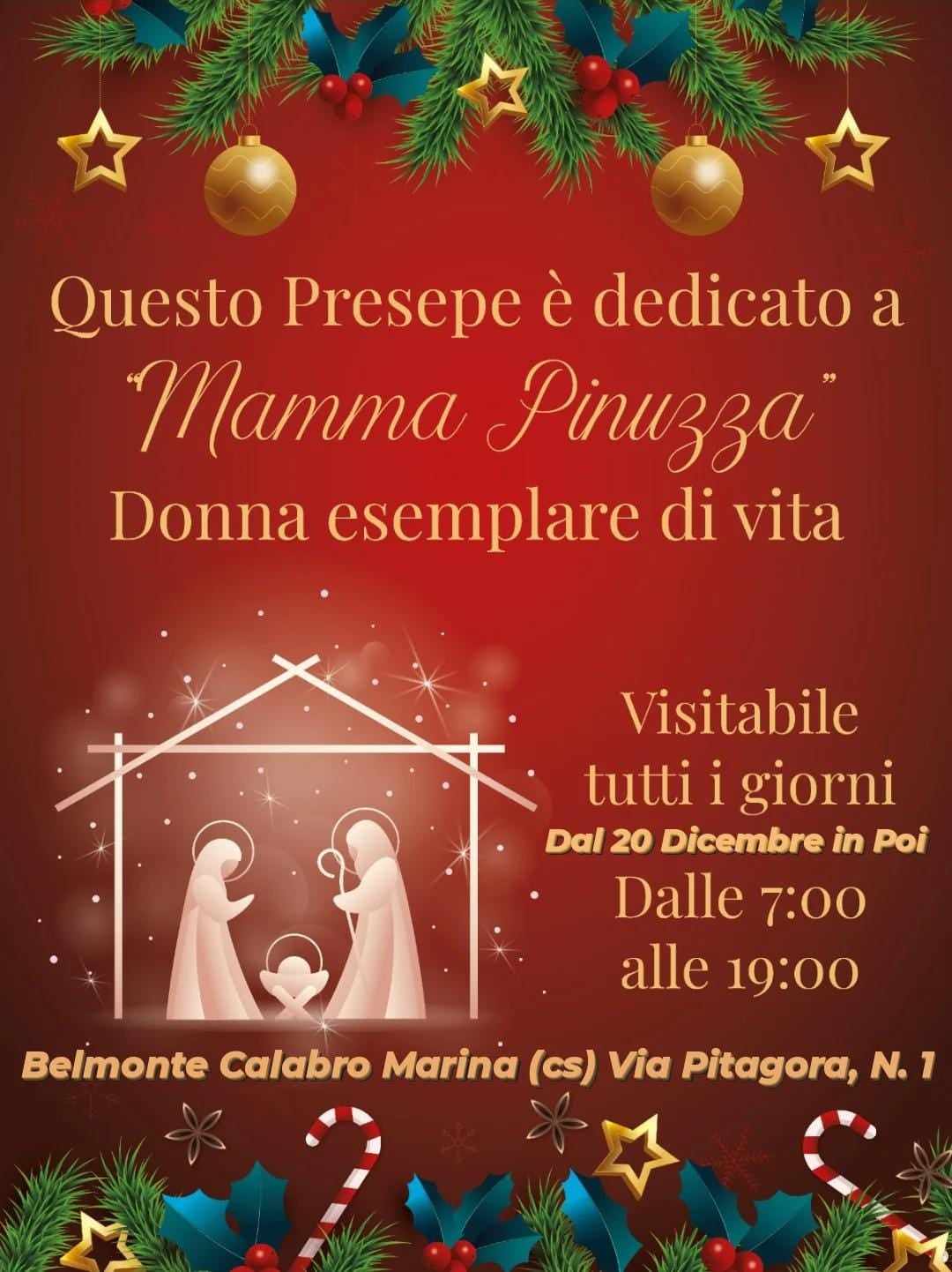 Riceviamo segnalazione di questo bellissimo Presepe “Mamma Pinuzza”, realizzato a Belmonte Calabro Marina, in Via Pitagora N.1, dall’artista Gianni Petrungaro, noto Chef della zona.
