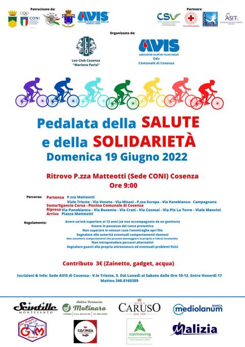 “La Pedalata della Salute e della Solidarietà è organizzata dall’Avis Comunale di Cosenza e dal Leo Club Cosenza “Marlena Parisi”.