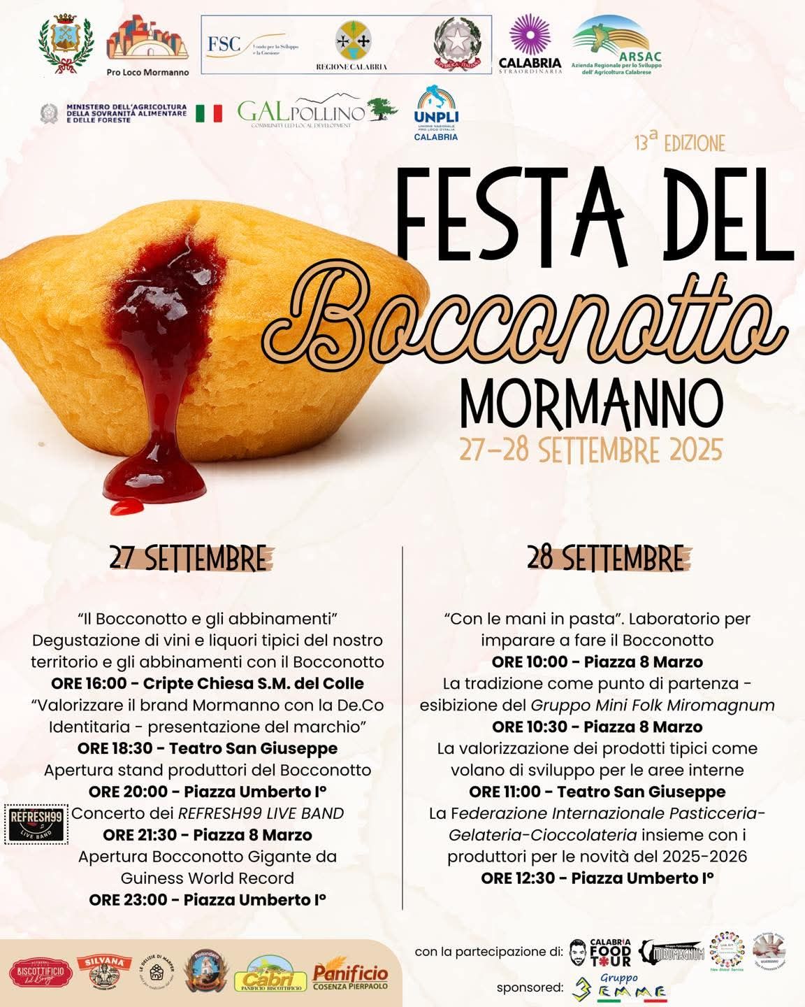 Il 27 e 28 settembre Mormanno ospiterà la tredicesima edizione della Festa del Bocconotto, manifestazione che negli anni ha saputo ritagliarsi un posto importante nel panorama degli eventi enogastronomici regionali
