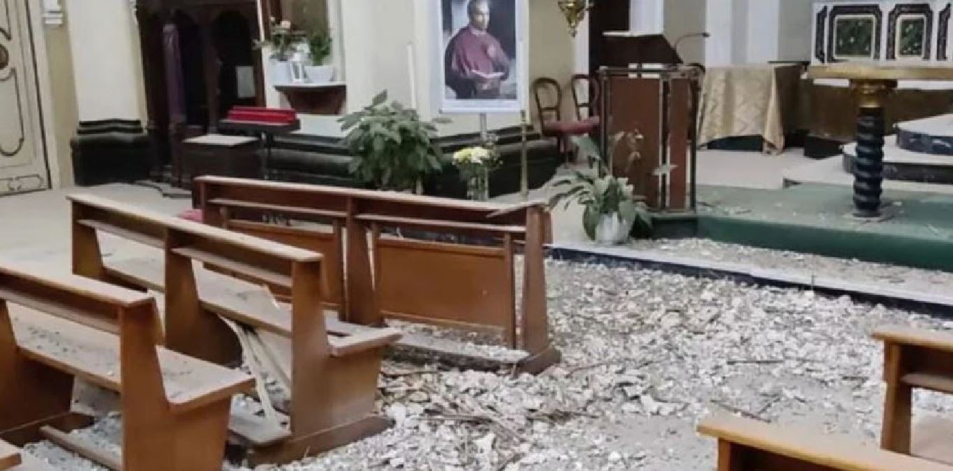 Ieri mattina, un’ora dopo la messa, sotto lo sguardo spaventato di un gruppo di turisti è crollata una parte di cupola, con i resti finiti tra i sottostanti banchi e il pavimento