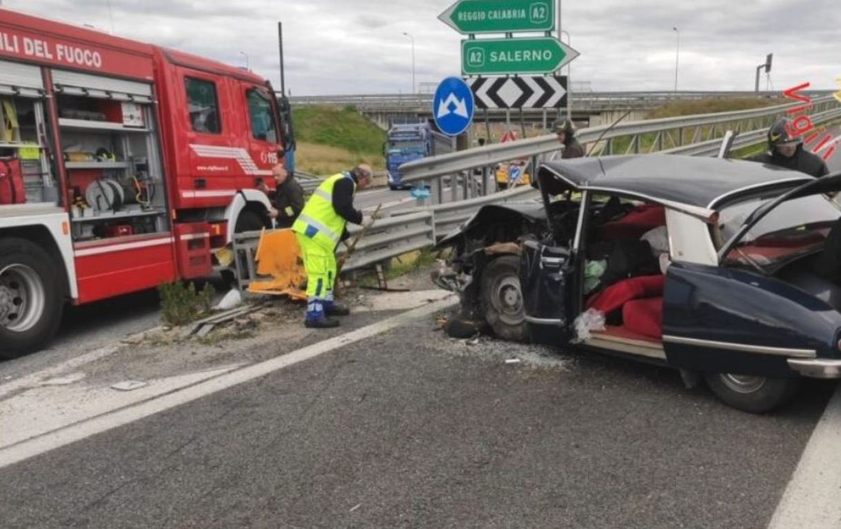“Una Citroen Pallas, per cause ancora in fase di accertamento, è uscita fuori strada e a causa l’impatto è costato la vita al conducente che è andato a sbattere violentemente contro lo spartitraffico (in auto anche altre tre componenti del nucleo familiare)”